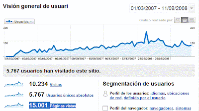 Esto es para darles las gracias. Según Google Analytics, éste su blog ha roto últimamente tres barreras psicológicas: la de los 5.000 visitantes únicos absolutos, la de las 10.000 visitas y la de las 15.000 páginas vistas. No está nada mal para un proyecto tan modesto como éste. No habría ocurrido sin los amigos de I Love IU, y me temo que tampoco sin mi viejo artículo sobre la campaña publicitaria de Lise Charmel. A todos ustedes, otra vez, muchas gracias.